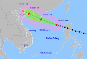 Dự báo vùng ven biển và các đảo thuộc tỉnh Quảng Ninh – Hải Phòng có nước dâng do bão cao từ 0,4-0,6m. Cần đề phòng ngập úng ở các khu vực trũng, thấp ven biển, cửa sông do nước dâng và sóng lớn từ chiều và tối 5/10.