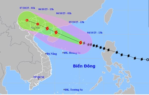 Theo dự báo, rạng sáng 5/10, bão sẽ mạnh lên cấp 13, giật cấp 16 trên khu vực Bắc Biển Đông, cách bán đảo Lôi Châu (Trung Quốc) khoảng 130km về phía Đông.