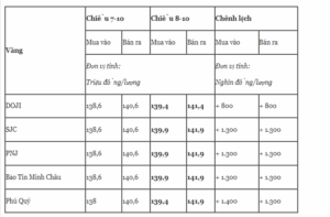 Theo đó, các thương hiệu vàng SJC, PNJ, Bảo Tín Minh Châu trưa nay đồng loạt tăng giá vàng miếng thêm 1,3 triệu đồng/lượng ở cả hai chiều, niêm yết ở mức 139,9 triệu đồng/lượng mua vào và 141,9 triệu đồng/lượng bán ra.