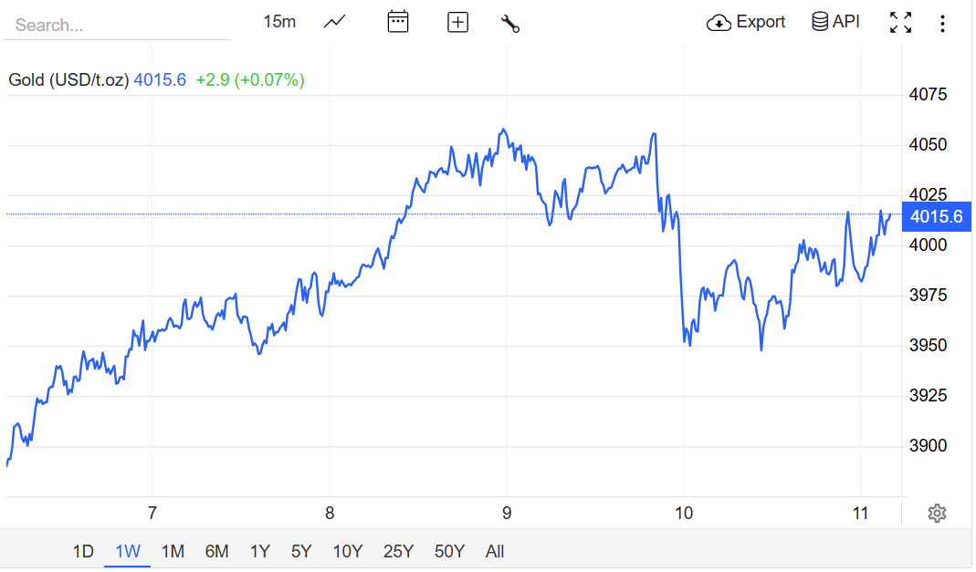 Giá vàng hôm nay 11/10, thế giới chốt phiên tuần trên 4.000 USD/ounce
