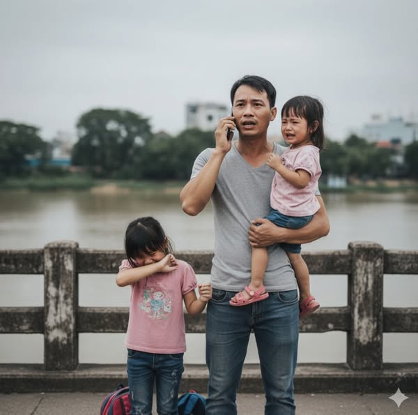 Trước đó, người dân ở hiện trường đã trình báo cơ quan công an sau khi phát hiện 3 bố con anh D. đứng trên cầu rồi biến mất đột ngột. Tại hiện trường có bỏ lại một chiếc xe máy và 2 cặp sách của trẻ em.