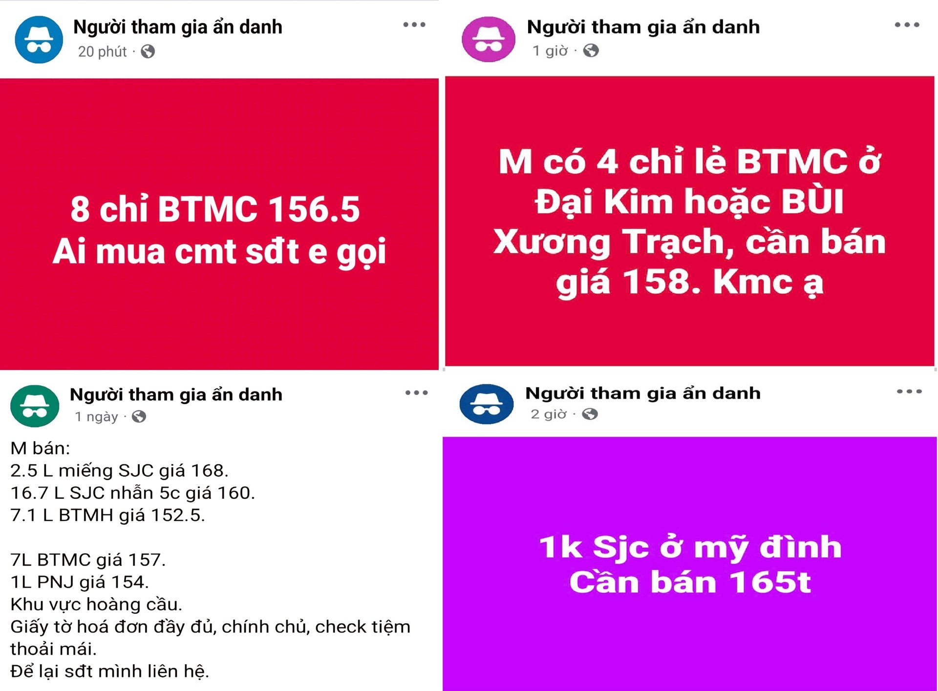 Còn tại thị trường chợ đen trong ngày 25/10, giá vàng rao bán nhẫn BTMC có phần giảm nhẹ và tăng nhẹ với vàng SJC. Lượng thông tin mua – bán xuất hiện vẫn dày đặc trên các hội, nhóm mạng xã hội. Cụ thể, giá vàng nhẫn BTMC rao bán ở mức chủ yếu từ 156,5 – 158 triệu đồng/lượng, cao hơn giá vàng niêm yết từ 3,5 – 5 triệu đồng/lượng. Giá vàng SJC rao bán ở mức chủ yếu từ 165 – 168 triệu đồng/lượng, cao hơn giá niêm yết từ 15,8 – 18,8 triệu đồng/lượng.