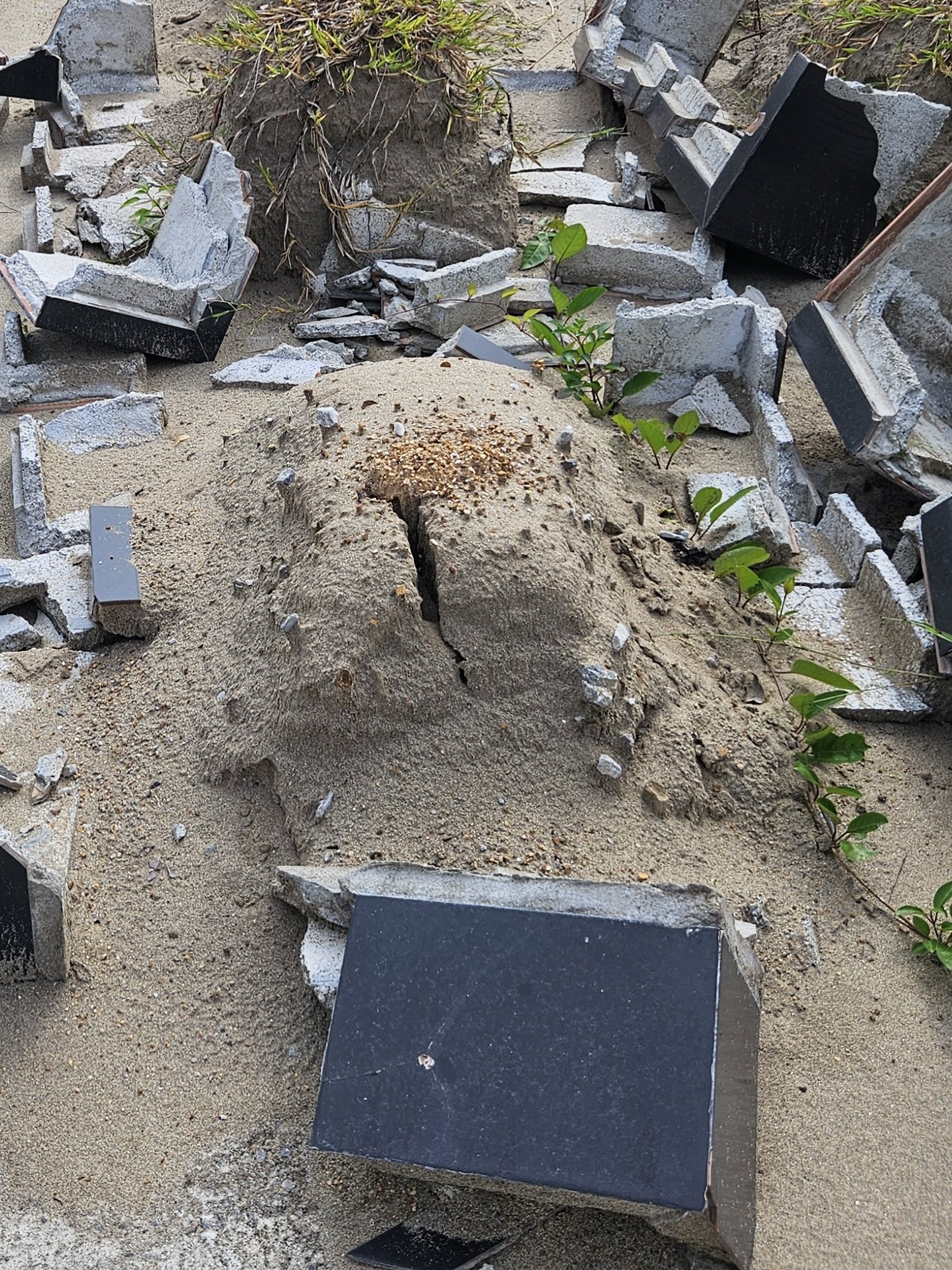 Một ngôi mộ mới xây dựng sau khi bị tháo dỡ, bên dưới chỉ có cát. Ảnh: Nguyễn Đại.