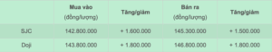 Mở cửa phiên giao dịch sáng 29/10, giá vàng miếng SJC bất ngờ hồi phục mạnh. Tại DOJI, vàng miếng niêm yết ở mức 144,9-146,9 triệu đồng/lượng (mua vào – bán ra), tăng 1,8 triệu đồng/lượng so với mức chốt phiên trước. Ngân hàng ACB cũng công bố mức giá tương tự, khẳng định sức bật trở lại của vàng SJC trên thị trường trong nước.