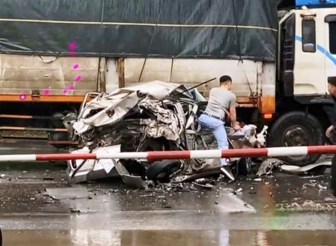 Cú va do xe đầu kéo đâm vào đuôi xe con, khiến chiếc xe con văng mạnh vào gầm sau xe tải. Cả 3 phương tiện bị hư hỏng.