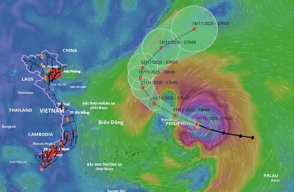 Dự báo ngày mai 9.11, bão Fung wong mạnh lên siêu bão. Đến sáng 10.11, bão đi vào Biển Đông, trở thành cơn bão số 14 trong năm nay.