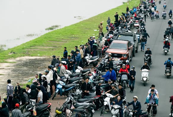 Nhiều người dân cũng đứng bên sông chờ đợi kết quả tìm kiếm