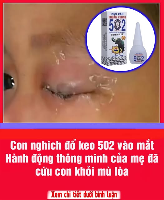 Người mẹ mở lọ keo 502 để sửa một số đồ trang trí nhỏ bị hỏng, còn đứa con 3 tuổi thì đang chơi đồ chơi của mình ở gần đó. Sau khi sử dụng, người mẹ bất cẩn quên không đóng nắp lọ keo, để lọ keo rơi xuống sàn và đi làm việc khác. Không ngờ, bé trai chơi gần đó đã vô ý giẫm phải lọ keo, làm keo bắn ra ngoài và một ít keo 502 đã bắn thẳng vào mắt em bé.