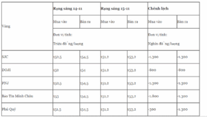 Giá vàng miếng trong nước cập nhật sáng 15-11 như sau: