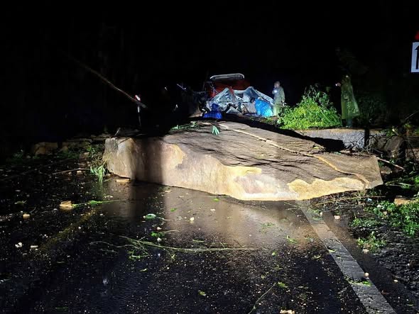 Tại các xã miền núi, nước đổ về mạnh làm các khe suối dâng cao. Cầu tràn thôn Ba Cẳng (xã Trung Khánh Vĩnh) bị ngập; trên tỉnh lộ 9, gồm đèo Khánh Sơn, xuất hiện nhiều điểm sạt lở, cây cối gãy đổ.
