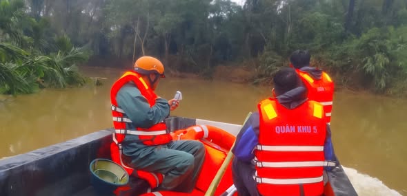 Lực lượng chức năng tìm kiếm nạn nhân mất tích.