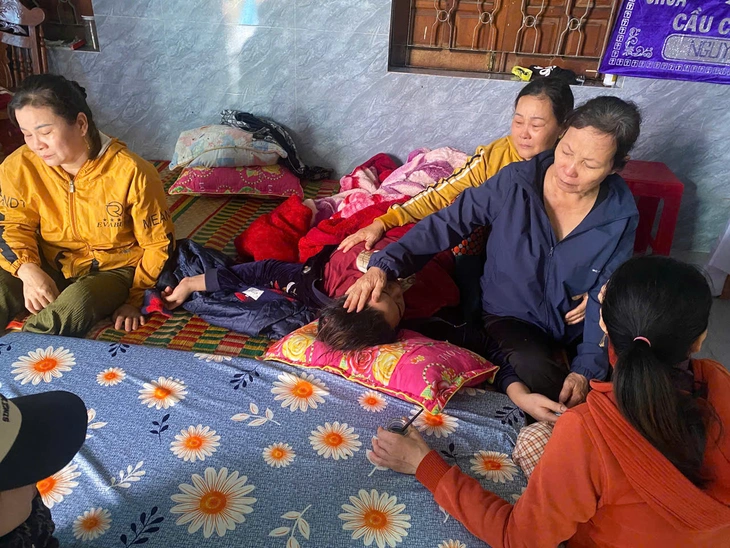 Vợ ông Thanh lúc tỉnh lúc mê sau khi mất hai con trong lũ dữ – Ảnh: B.D.