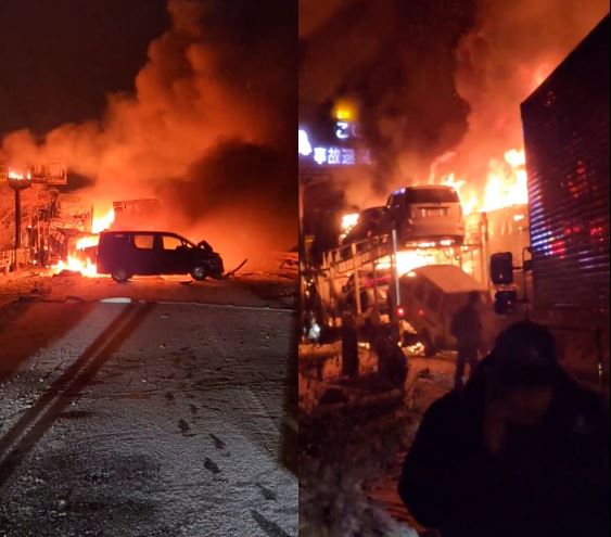 Tai nạn xảy ra vào khoảng 19h30 tối 26/12 (giờ địa phương), trên tuyến cao tốc Kan-Etsu, đoạn đi qua khu vực thị trấn Minakami, tỉnh Gunma. Cú va chạm dây chuyền đã gây ra cháy lớn tại hiện trường. Hình ảnh được ghi lại cho thấy một xe đầu kéo dạng rơ-moóc, nghi đang vận chuyển nhiều ô tô đã bốc cháy dữ dội, kéo theo nhiều phương tiện khác bị thiêu rụi.