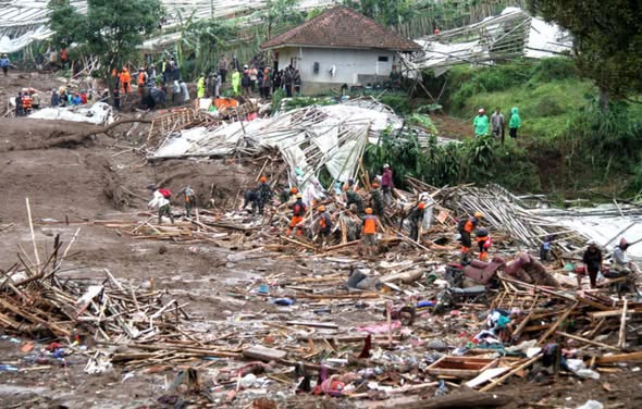 Lực lượng cứu hộ tại Indonesia đang nỗ lực đua với thời gian sau khi một sạt lở đất khủng khiếp ập xuống ngôi làng Pasir Langu ở tỉnh West Bandung, Tây Java.