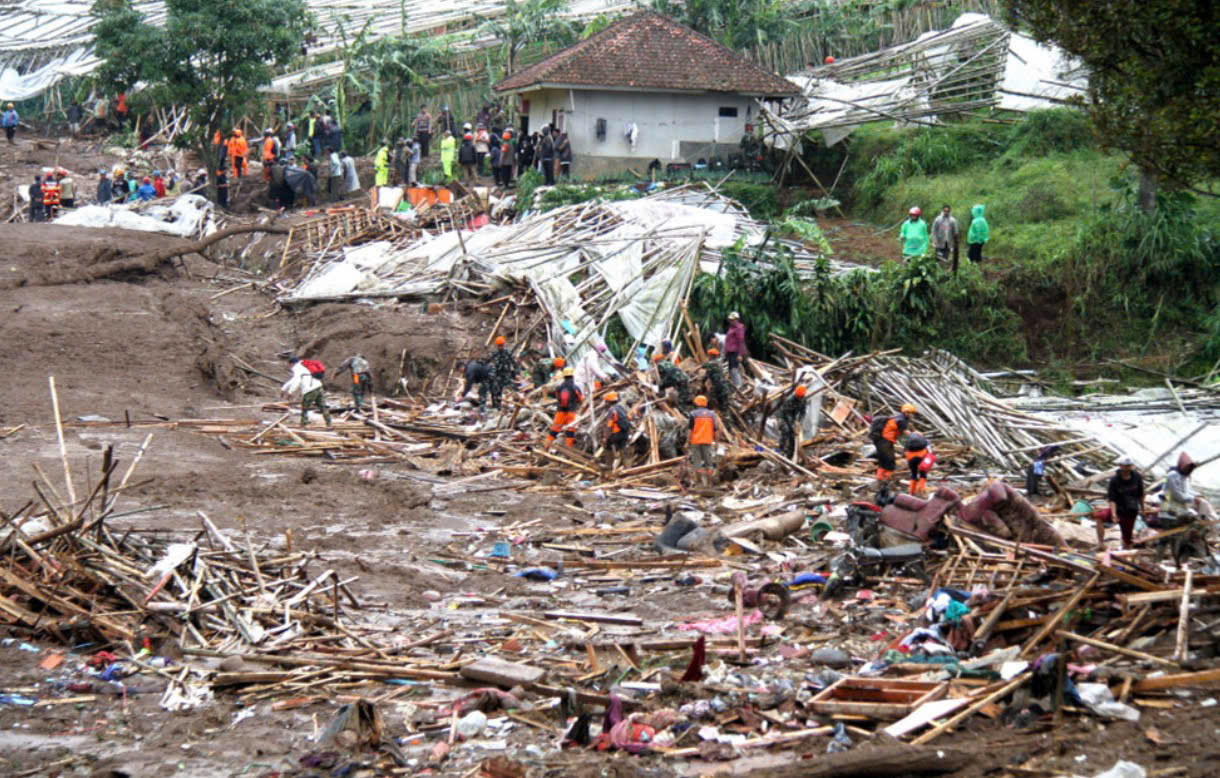 Một trận sạt lở đất nghiêm trọng xảy ra lúc sáng sớm ngày 25/1 trên sườn ngọn núi Mount Burangrang ở tỉnh West Java, Indonesia, đã chôn vùi khoảng 34 ngôi nhà của người dân làng Pasir Langu dưới lớp bùn cao tới 5 mét. Điều kiện địa hình lỏng lẻo khiến công tác cứu hộ trở nên cực kỳ khó khăn, buộc lực lượng chức năng phải dùng tay và dụng cụ đơn giản để tìm kiếm nạn nhân.