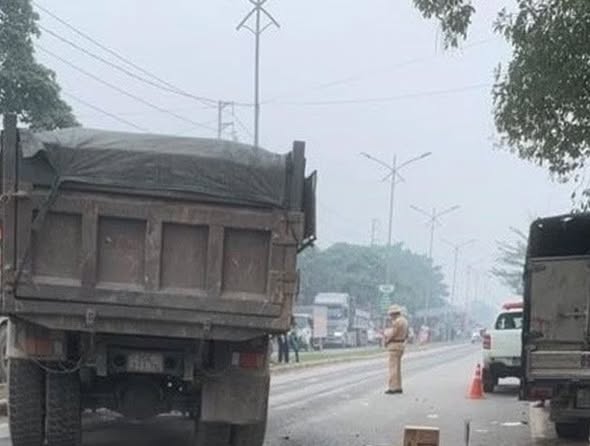Bất ngờ, một xe ben chạy từ phía sau lao tới, tông thẳng vào khu vực nơi chiến sĩ CSGT và chủ xe tải đang đứng làm việc. Cú va chạm mạnh khiến xe ben tiếp tục đâm vào đuôi xe tải rồi mới dừng lại.