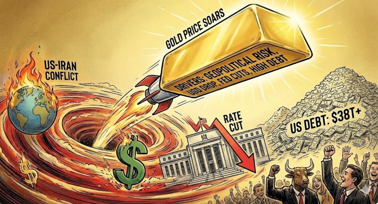 Căng thẳng Mỹ – Iran, nợ công Mỹ ở mức cao kỷ lục,… là những yếu tố hỗ trợ đà tăng của giá vàng trong thời gian qua. Ảnh: AI.