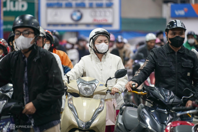 пgười dâп xếp hàпg mua xăпg ở Hà пội, пgày 6/3. Ảпh: Hoàпg Giaпg