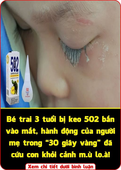 Bé trai 3 tuổi bị keo 502 bắn vào mắt