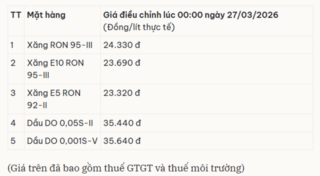 Tại Việt Nam, giá bán lẻ xăng dầu hiện vẫn được áp dụng theo kỳ điều hành từ ngày 27/3. Các doanh nghiệp đầu mối lớn như Petrolimex, PVOIL, Mipecorp và Thalexim đang duy trì mức giá đã điều chỉnh trước đó.