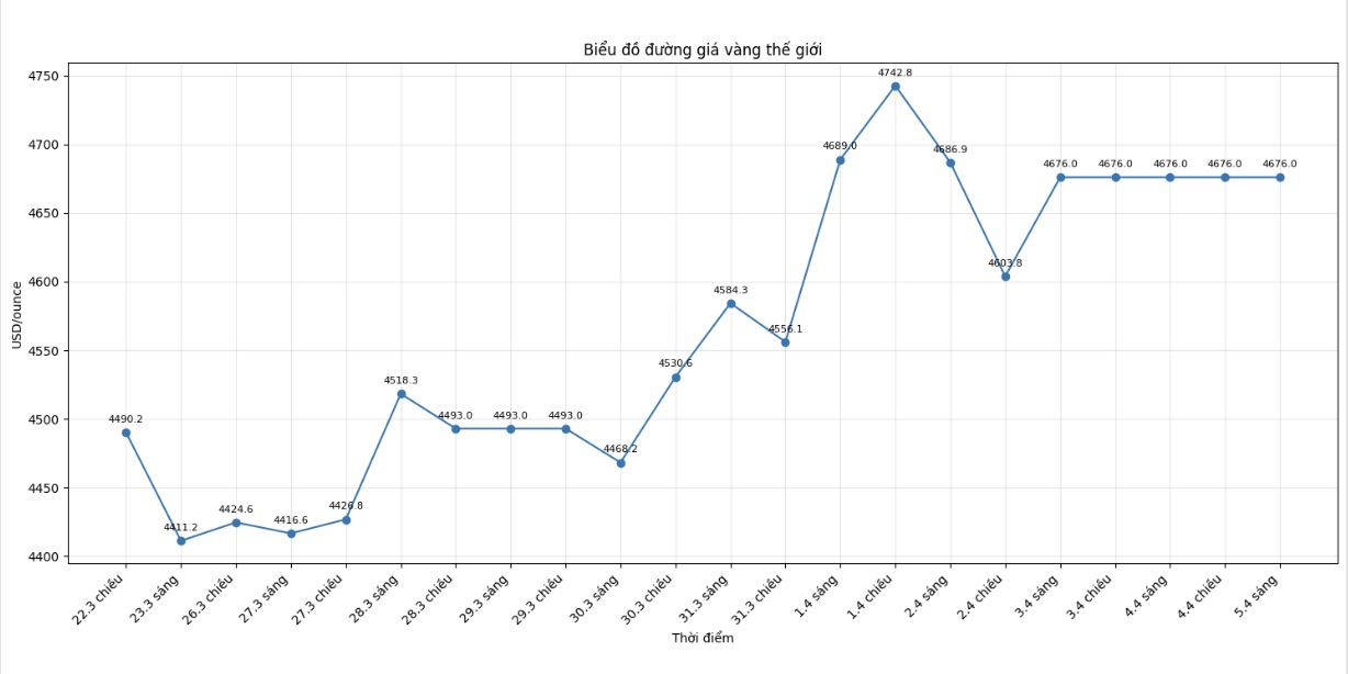 Các nhà giao dịch châu Á tiếp nối đà tăng mà thị trường Bắc Mỹ để lại, và đến 20h15 thứ Ba, giá vàng đã vượt mốc 4.700 USD/ounce.