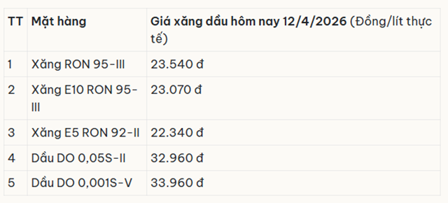 Ở thị trường trong nước, ngày 13/4, giá bán lẻ xăng dầu phổ biến tiếp tục được duy trì ổn định. Theo đó, giá xăng E5 RON92 không vượt quá 22.344 đồng/lít, trong khi xăng RON95-III không cao hơn 23.543 đồng/lít.