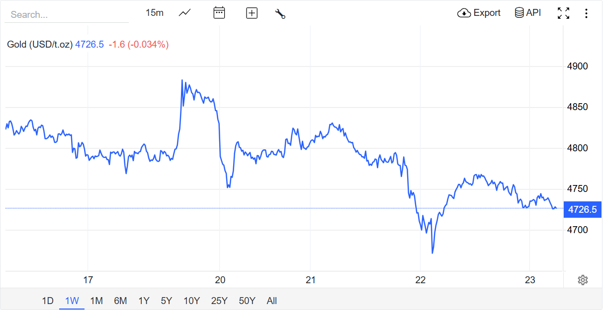 Giá vàng thế giới giảm nhẹ, duy trì trên mức 4.700 USD/ounce